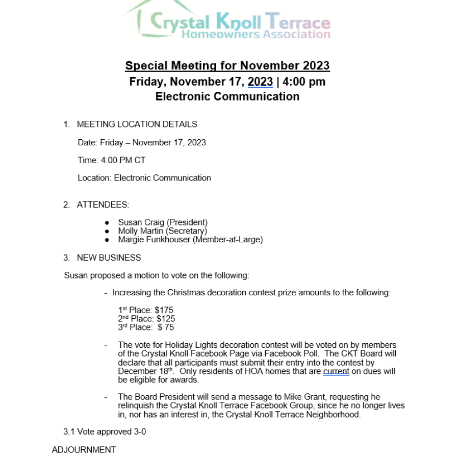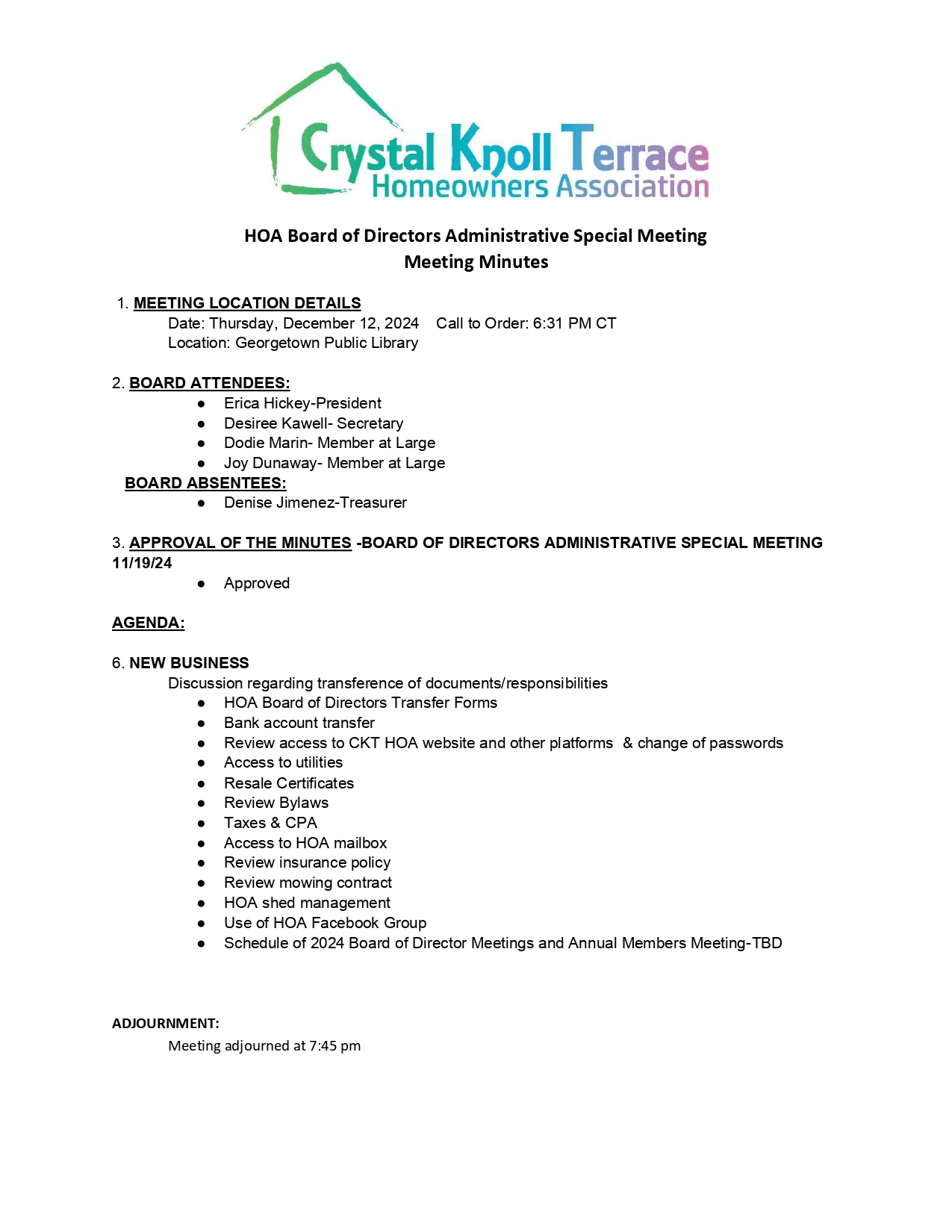 Board of Directors Transitional Meeting Minutes | November 19, 2024