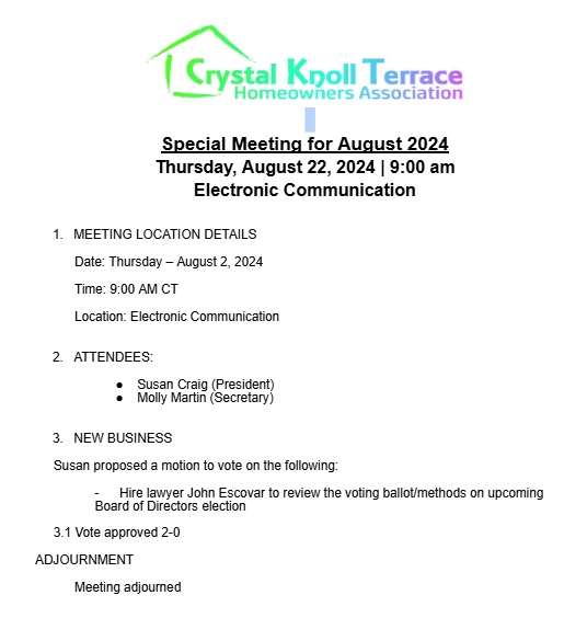 2024 Annual Board of Directors Meeting & Election Minutes | October 27, 2024